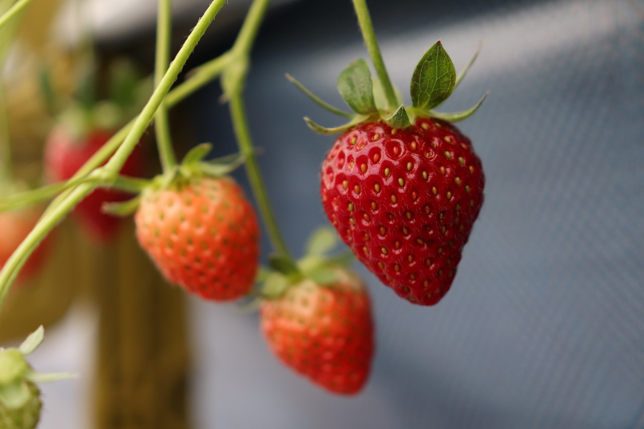 「ベリーホップすず」は、ばばちゃんファームで人気のいちご品種で、甘さと酸味のバランスが絶妙な味わいが魅力です。果実は中~大粒でしっかりとした食感があります。その見た目の美しさも特長で、鮮やかな赤色とツヤのある表面は、食欲をそそります。香りも豊かで、摘みたての香りだけでも幸せな気持ちになれるほどです。食べ比べをしても際立つ個性を持っており、いちご狩りや直売所でも一番人気の品種として、多くの方に愛されています。